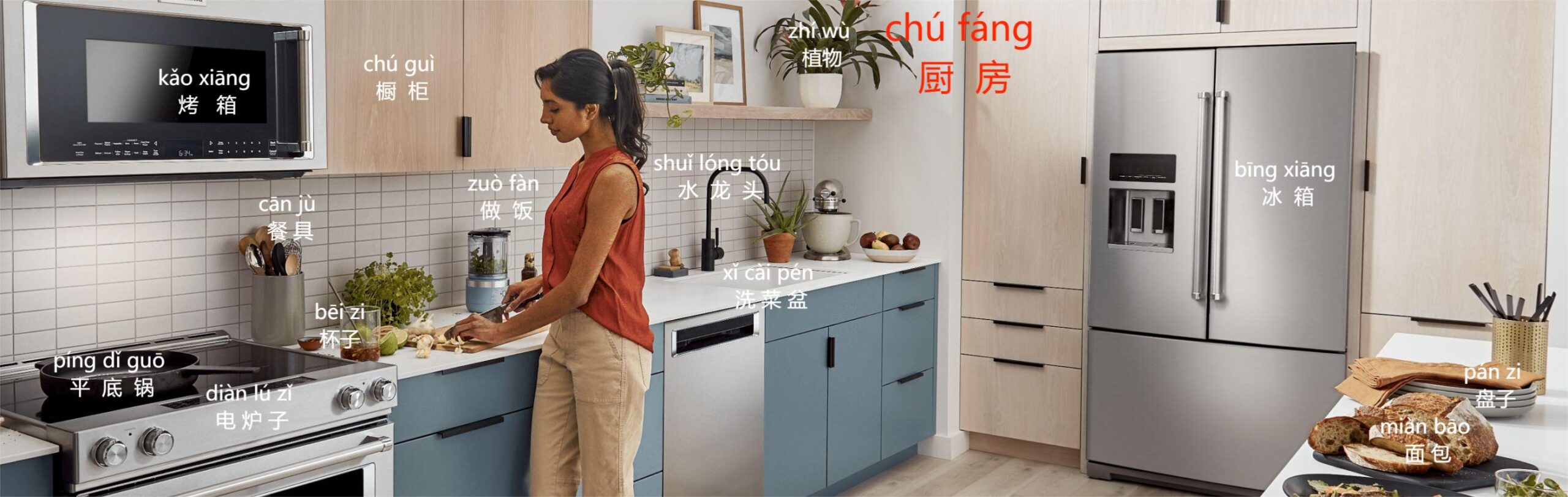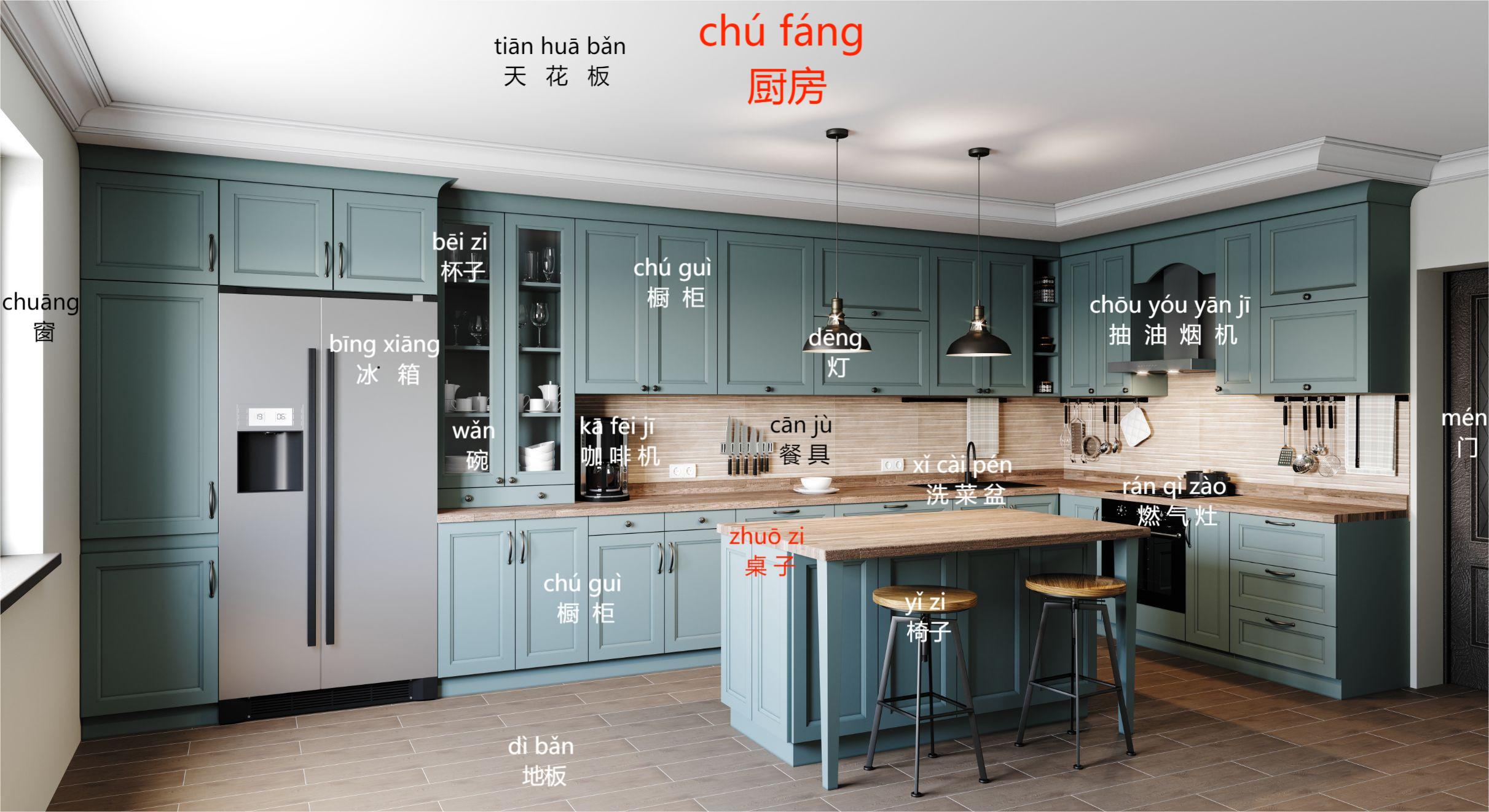 wǒ de chú fáng hěn xiàn dài, hěn piào liàng!